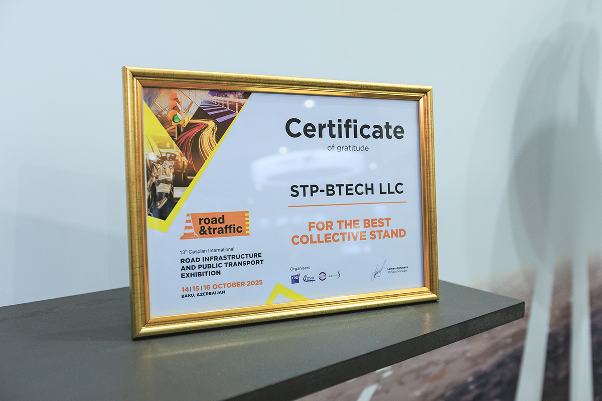 At the end of a productive three-day event, STP-BTECH was honored with the “For the Best Collective Stand” award by the Road&Traffic exhibition.